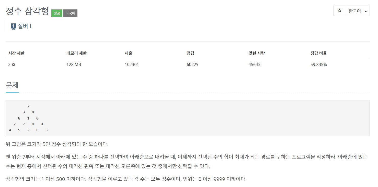 문제 링크: https://www.acmicpc.net/problem/1932