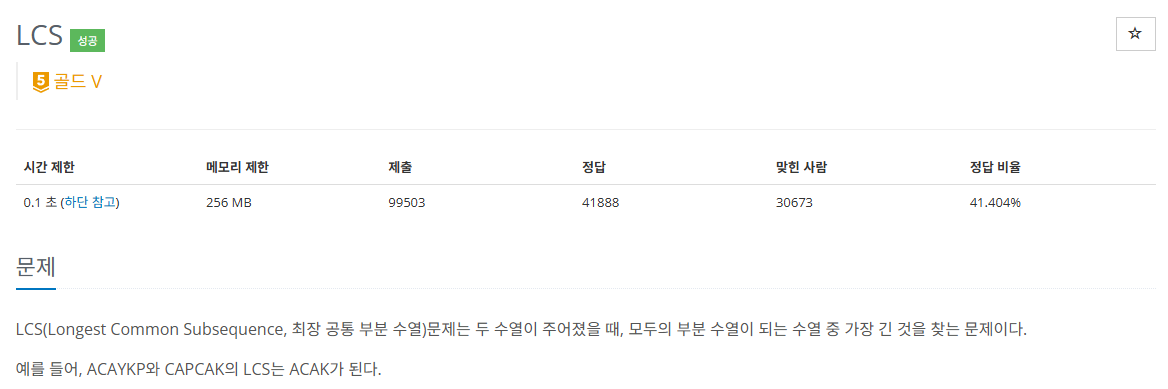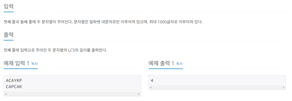 - 출력으로 두 문자열의 LCS의 길이를 출력합니다.
