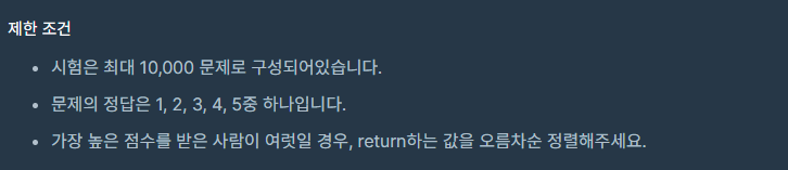 그 다음 Math.max()와 spread 연산자를 사용하여 가장 높은 점수를 찾고, 해당 점수를 가진 수포자의 번호를 result 배열에 추가하여 반환했습니다.
