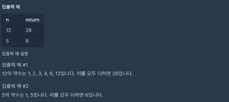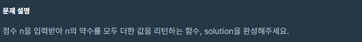 - sum += i: i가 n의 약수일 경우, sum에 i를 더합니다.